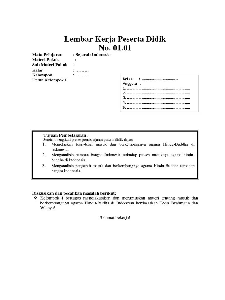 Contoh Lembar Kerja Kelompok Pdf / Lks Rpp Ipa Kd 5 Pdf / Lampiran 25 contoh format program kerja pelaksana urusan kepegawaian.